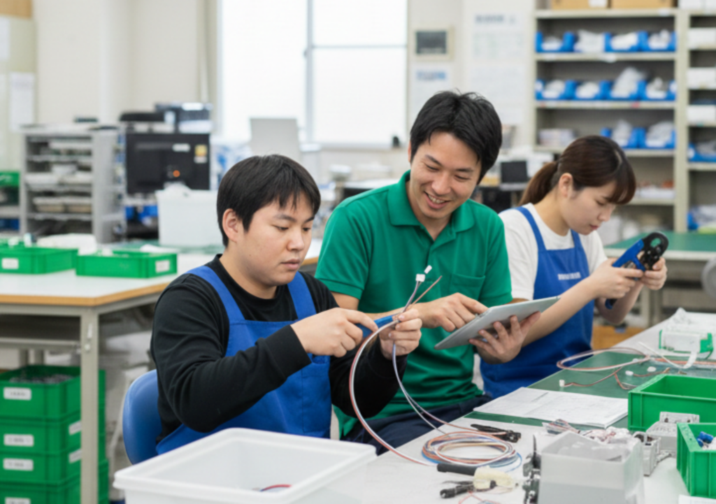 作業内容は、電子部品の組立や簡単な軽作業が中心で、関連会社での仕事体験や施設外就労など一般就労に向けたステップアップが可能です!